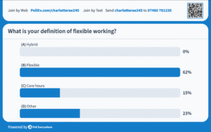 Too often, “flexible” means hybrid by mandate – a set number of office days decided by the business, rather than genuine flexibility over hours, location, workload or autonomy. An interesting segway in the conversation was the number of attendees who weren’t clear even now on the definition of hybrid working.